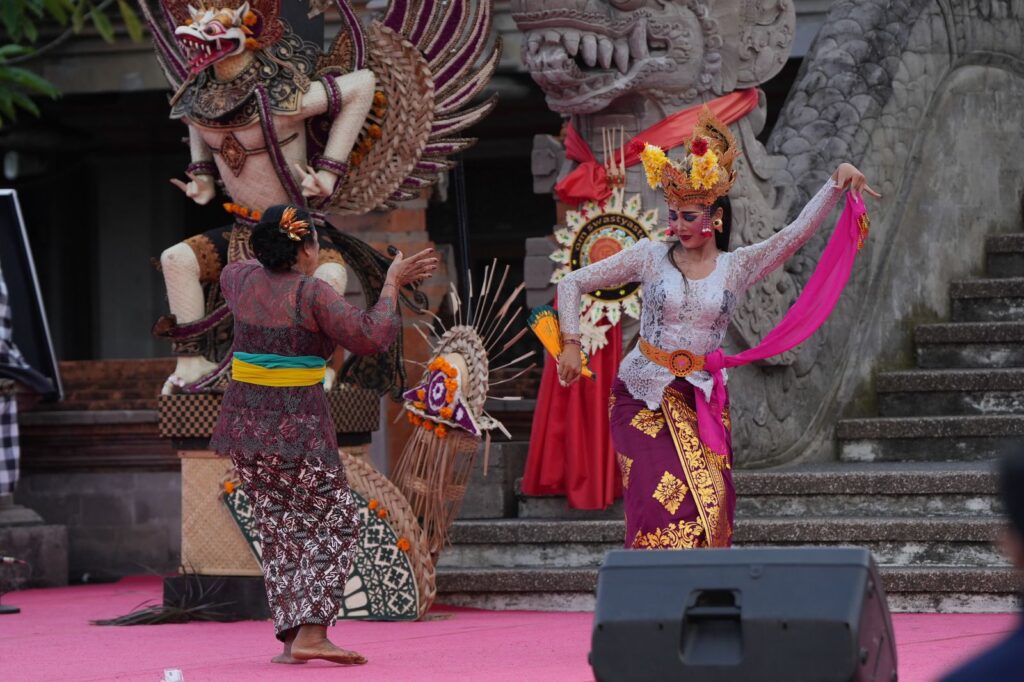 DENPASAR – Komunitas Seni Nyenit Nyenir, Banjar Sulangai, Desa Sulangai, Petang, sebagai duta Kabupaten Badung, tampil pada pementasan parade joged bumbung tradisi, Pesta Kesenian Bali (PKB) ke-46. Bertempat di Kalangan Madya Mandala, Art Center Bali, Rabu 10 Juli 2024, pementasan ini, sebanyak 4 penari tampil maksimal di hadapan pengunjung.
